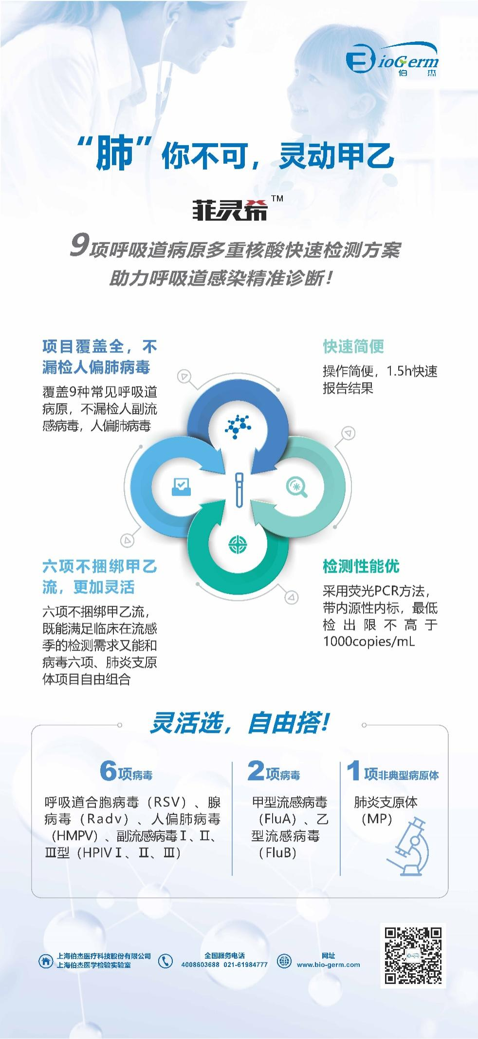 伯杰醫(yī)療作為一家致力于聚焦感染性病原體領(lǐng)域的國家高新技術(shù)企業(yè),集診斷試劑和設(shè)備的研發(fā)、生產(chǎn)、銷售、測序、科研服務(wù)和醫(yī)學(xué)檢驗(yàn)服務(wù)于一體,為客戶提供精準(zhǔn)化整體解決方案。會議期間,伯杰醫(yī)療將攜“菲靈?!焙粑啦≡嘀睾怂釞z測產(chǎn)品亮相。在秋高氣爽的九月,伯杰醫(yī)療誠摯邀請各位專家同道蒞臨展位交流學(xué)習(xí),熱忱期待與您相遇!
