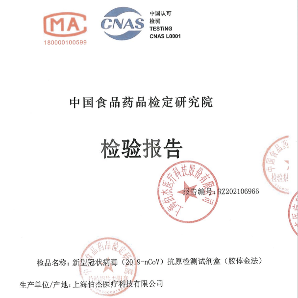 伯杰新型冠狀病毒抗原檢測(cè)試劑盒(膠體金法)部分注冊(cè)檢報(bào)告