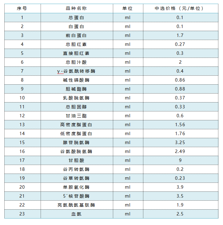 凱成生物中標(biāo)產(chǎn)品及中標(biāo)價(jià)格如下: