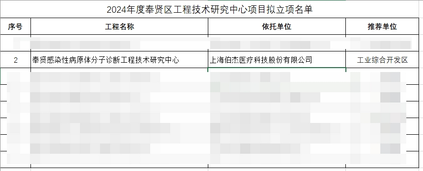 近日,2024年度奉賢區(qū)工程技術(shù)研究中心擬立項(xiàng)名單公示,伯杰醫(yī)療組建的“奉賢感染性病原體分子診斷工程技術(shù)研究中心”憑借突出的科研能力和創(chuàng)新實(shí)力,成功獲評(píng)2024年度“奉賢區(qū)工程技術(shù)研究中心”。在科技創(chuàng)新的道路上,伯杰醫(yī)療再次斬獲殊榮。