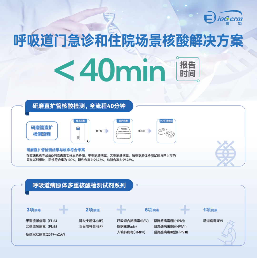 伯杰醫(yī)療的全新特制研磨珠直擴技術(shù)也將一同展示,該技術(shù)能高效釋放病原體核酸,顯著提升樣本釋放效率,同時有效吸附雜質(zhì),提高樣本純度。經(jīng)國家標準品與臨床真實樣本測試,其靈敏度與磁珠法相近,適用于伯杰呼吸道甲型 / 乙型流感病毒、肺炎支原體等核酸檢測項目。