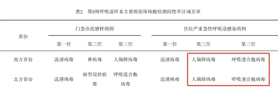 2025年第九周數(shù)據(jù)顯示,HMPV和RSV在門診及住院病例中均呈增長(zhǎng)趨勢(shì),且在南方與北方的門診、急診以及住院嚴(yán)重急性呼吸道感染病例中,均位列前三。