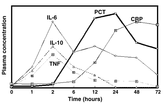 圖:IL-6、IL-10、PCT 等指標(biāo)隨時(shí)間的變化趨勢