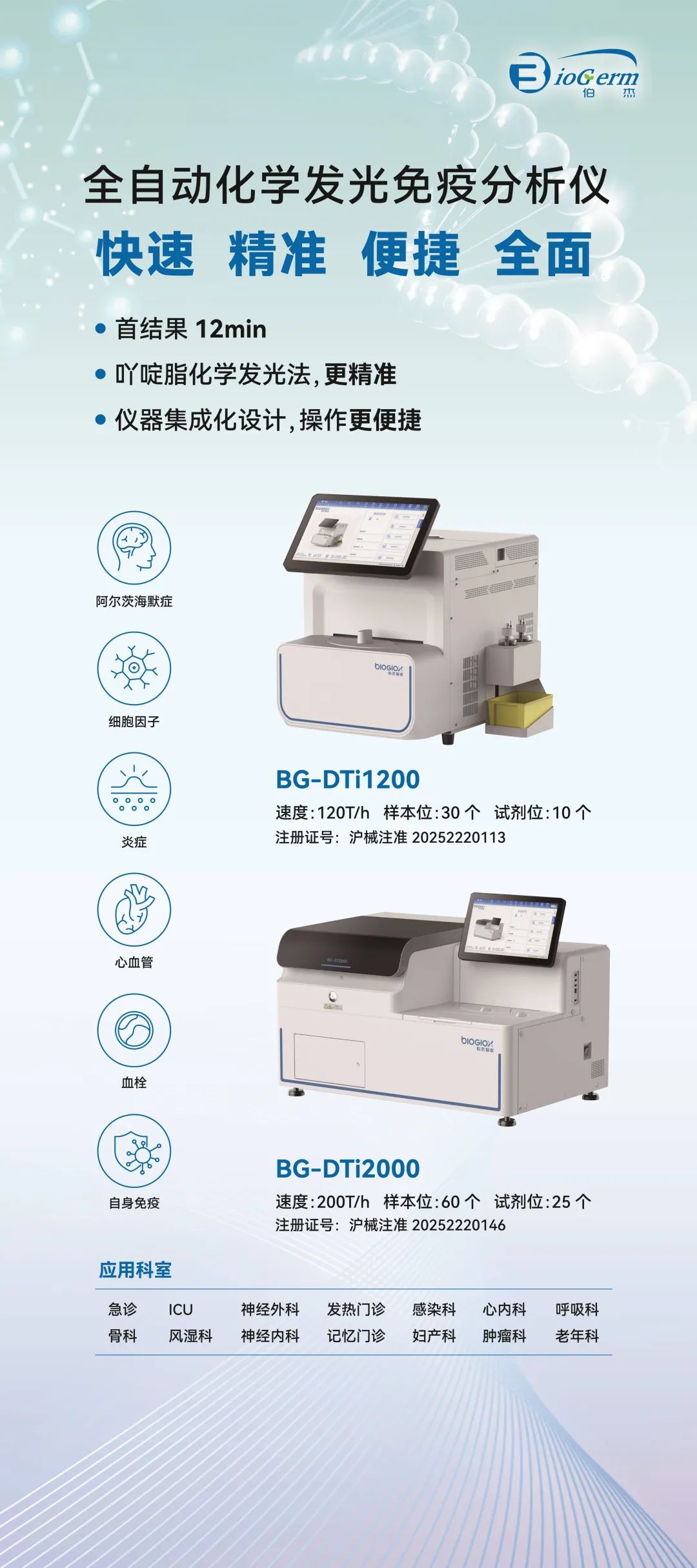 上海伯杰推出基于化學(xué)發(fā)光法細(xì)胞因子13項(xiàng)檢測試劑,產(chǎn)品靈敏度高、特異性強(qiáng)、操作簡單、線性范圍寬、不同項(xiàng)目可以自由組合,配套吖啶酯全自動(dòng)化學(xué)發(fā)光免疫分析儀,準(zhǔn)確率高,檢測速度快,儀器占地面積小,可靈活滿足基層醫(yī)院及等級(jí)醫(yī)院的不同檢測需求。