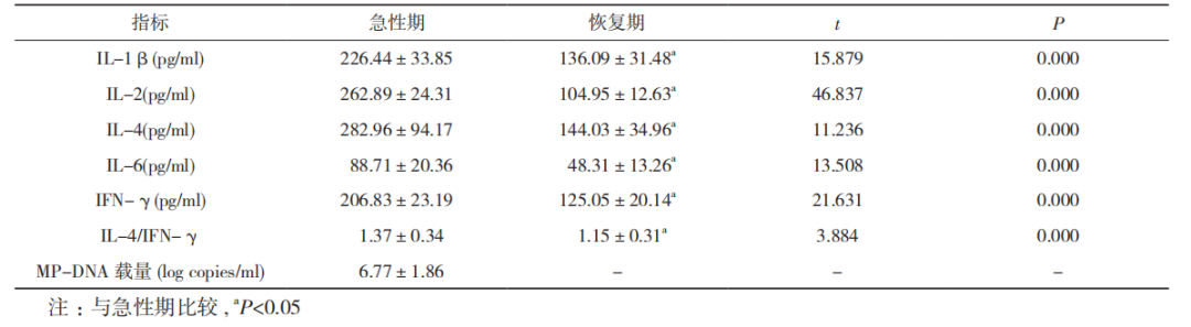 細(xì)胞因子及 MP-DNA 載量比較
