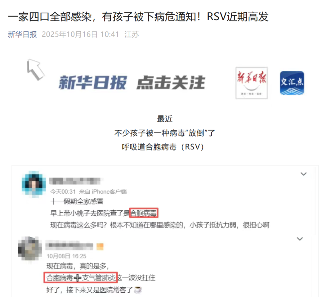 據(jù)人民日報(bào)報(bào)道,在上海市兒童醫(yī)院,近日因發(fā)熱、咳嗽、哮喘等呼吸道癥狀前來急診就醫(yī)的兒童比9月底高出了30%左右,而近期呼吸科病房里陽性率首位的也是呼吸道合胞病毒,肺炎患兒中最小的才1個(gè)多月。醫(yī)生介紹,此前接診到一例5歲的呼吸道合胞病毒小患者,經(jīng)詢問發(fā)現(xiàn)家中外婆、媽媽等也都有感染癥狀。