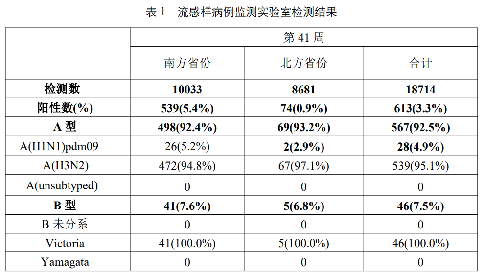 圖片來源于中國疾控中心2025年第41周流感檢測周報