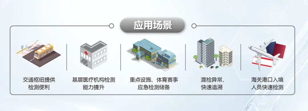對(duì)于流動(dòng)性人口,快速出報(bào)告也將大大的降低傳播風(fēng)險(xiǎn),在鐵路、機(jī)場(chǎng)、客運(yùn)站等交通樞紐、以及對(duì)重點(diǎn)區(qū)域、重點(diǎn)場(chǎng)所、重點(diǎn)人群的高效檢測(cè),則需要更加靈活機(jī)動(dòng)、準(zhǔn)確高效、自動(dòng)化的核酸檢測(cè)方式。