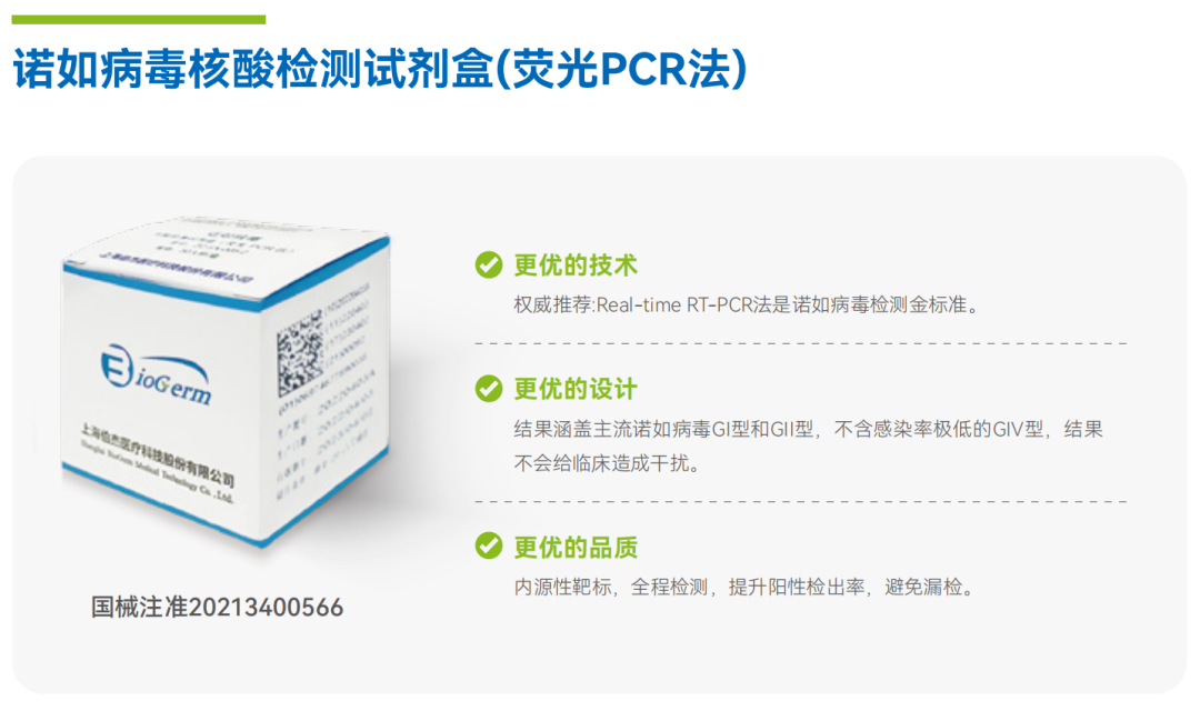 諾如病毒檢測(cè)主要有抗原檢測(cè)和核酸檢測(cè),《諾如病毒感染暴發(fā)調(diào)查和預(yù)防控制技術(shù)指南(2015 版)》中指出:RT-PCR方法靈敏度和準(zhǔn)確度高,是實(shí)驗(yàn)室檢測(cè)諾如病毒的金標(biāo)準(zhǔn)。上海伯杰醫(yī)療的伯杰的諾如病毒核酸檢測(cè)試劑可在1.5小時(shí)內(nèi)出報(bào)告。