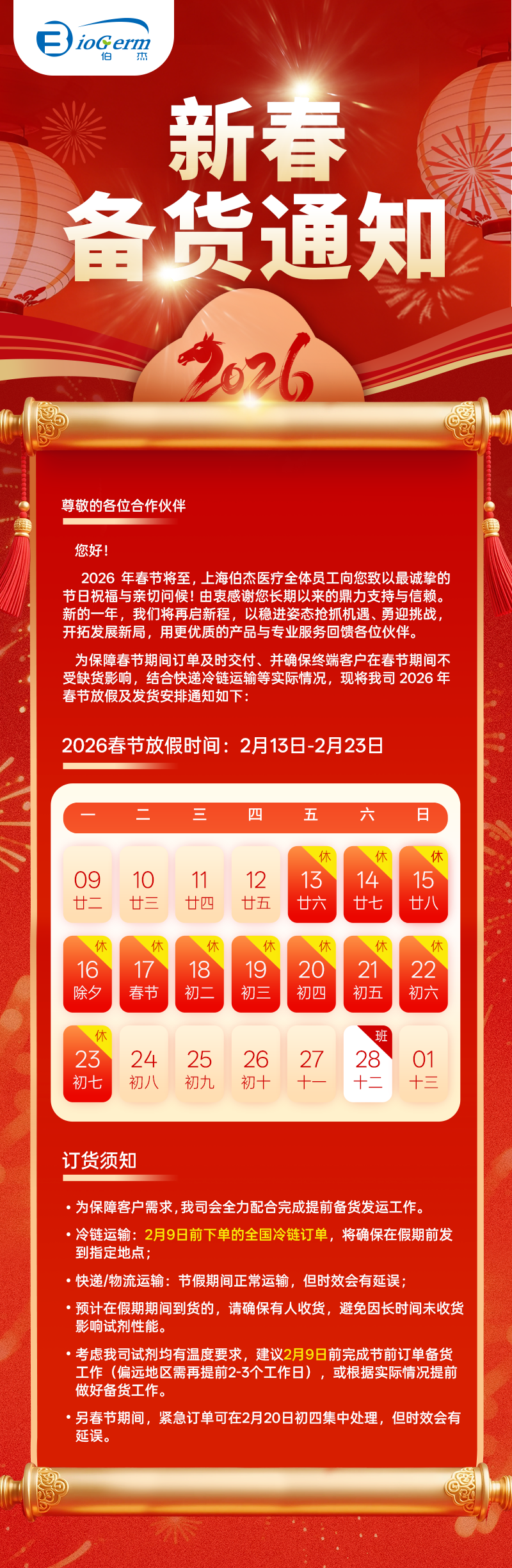 一鍵查閱 | 伯杰醫(yī)療2026年春節(jié)備貨通知