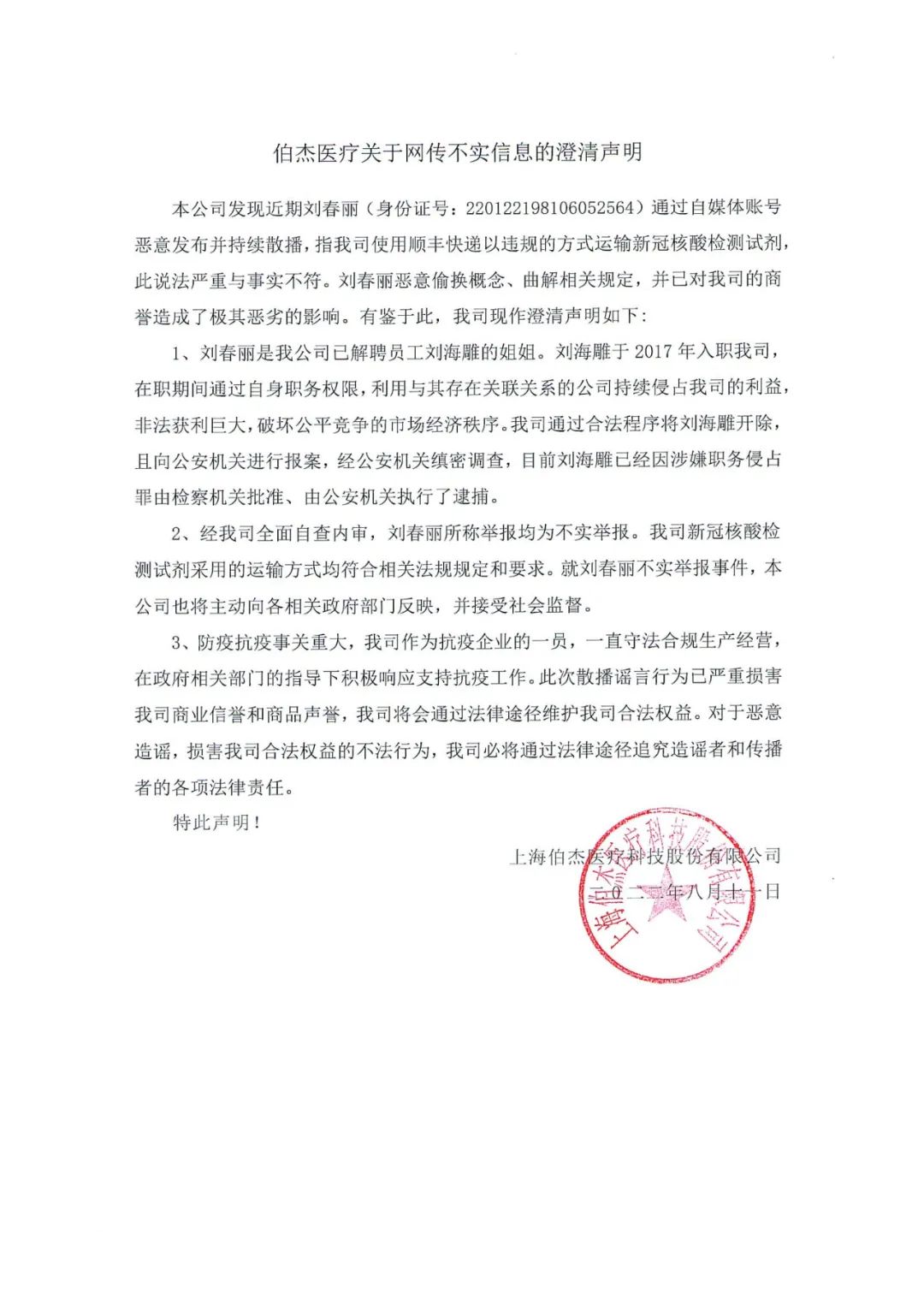 伯杰醫(yī)療嚴(yán)正聲明!