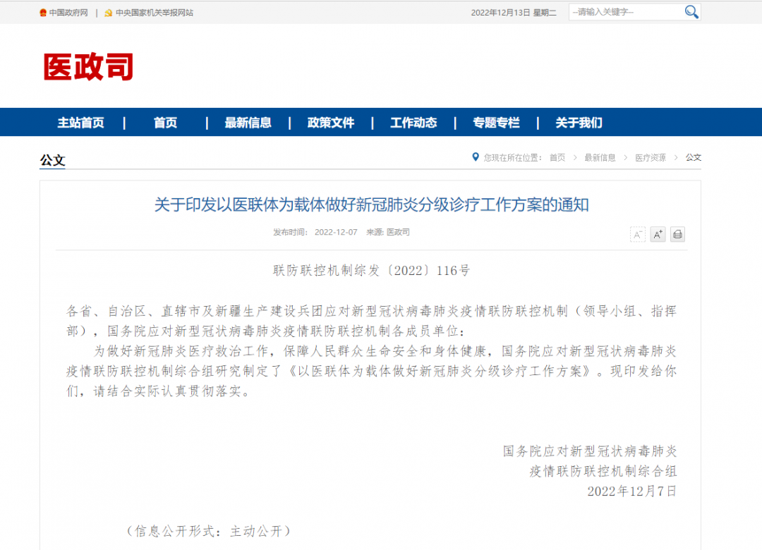國務(wù)院"新十條"政策發(fā)布后,為進(jìn)一步優(yōu)化就醫(yī)流程,最大限度減少醫(yī)院交叉感染,保障患者和醫(yī)務(wù)人員安全,國務(wù)院聯(lián)防聯(lián)控機(jī)制12月7日發(fā)布《關(guān)于進(jìn)一步優(yōu)化就醫(yī)流程做好當(dāng)前醫(yī)療服務(wù)工作的通知》,通知規(guī)定:
