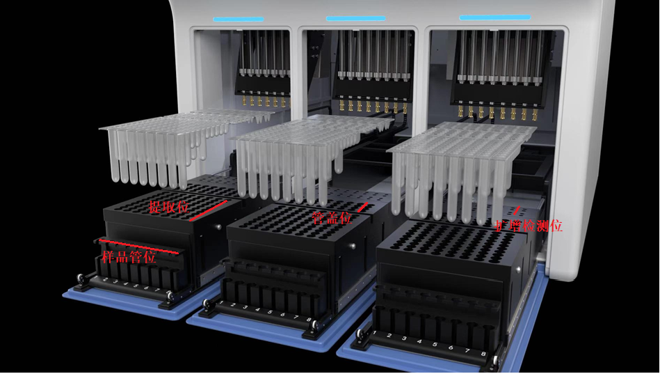 這也是國內(nèi)首款三個模塊獨立運行的分子POCT一體機,打破成批上量的限制,一臺機器完成三臺功能。