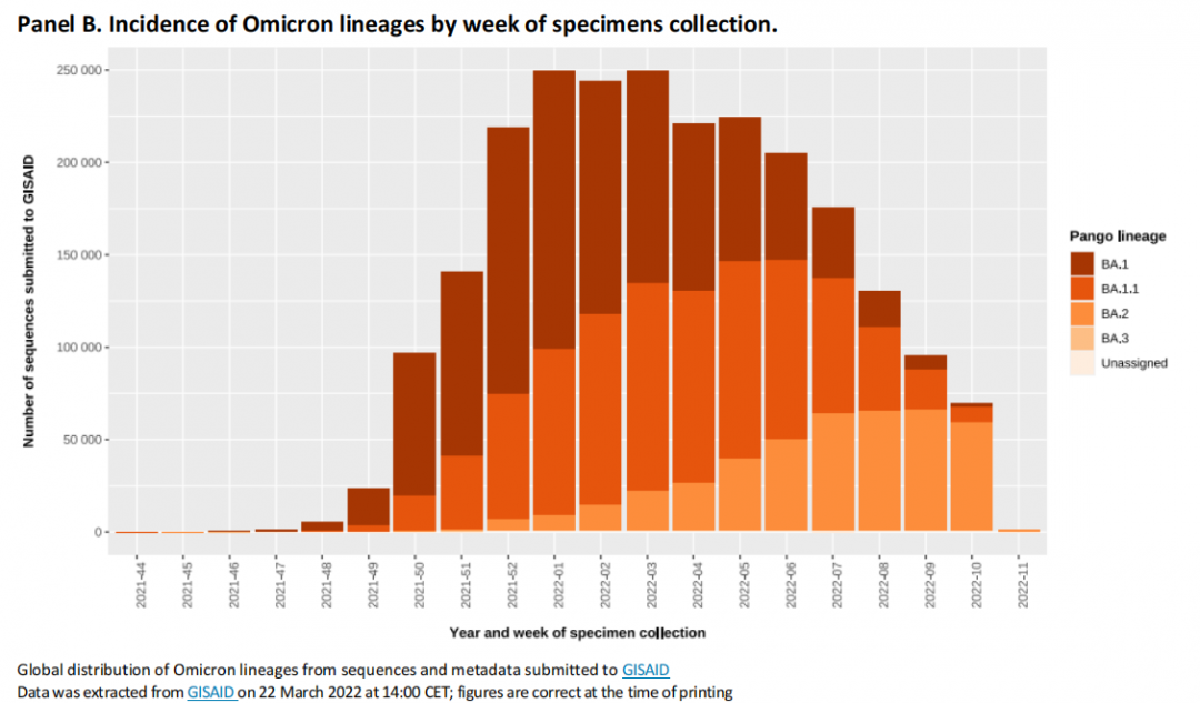 *Omicron各亞型全球分布來自GISAID,截止日期2022.3.22 14:00 CET
